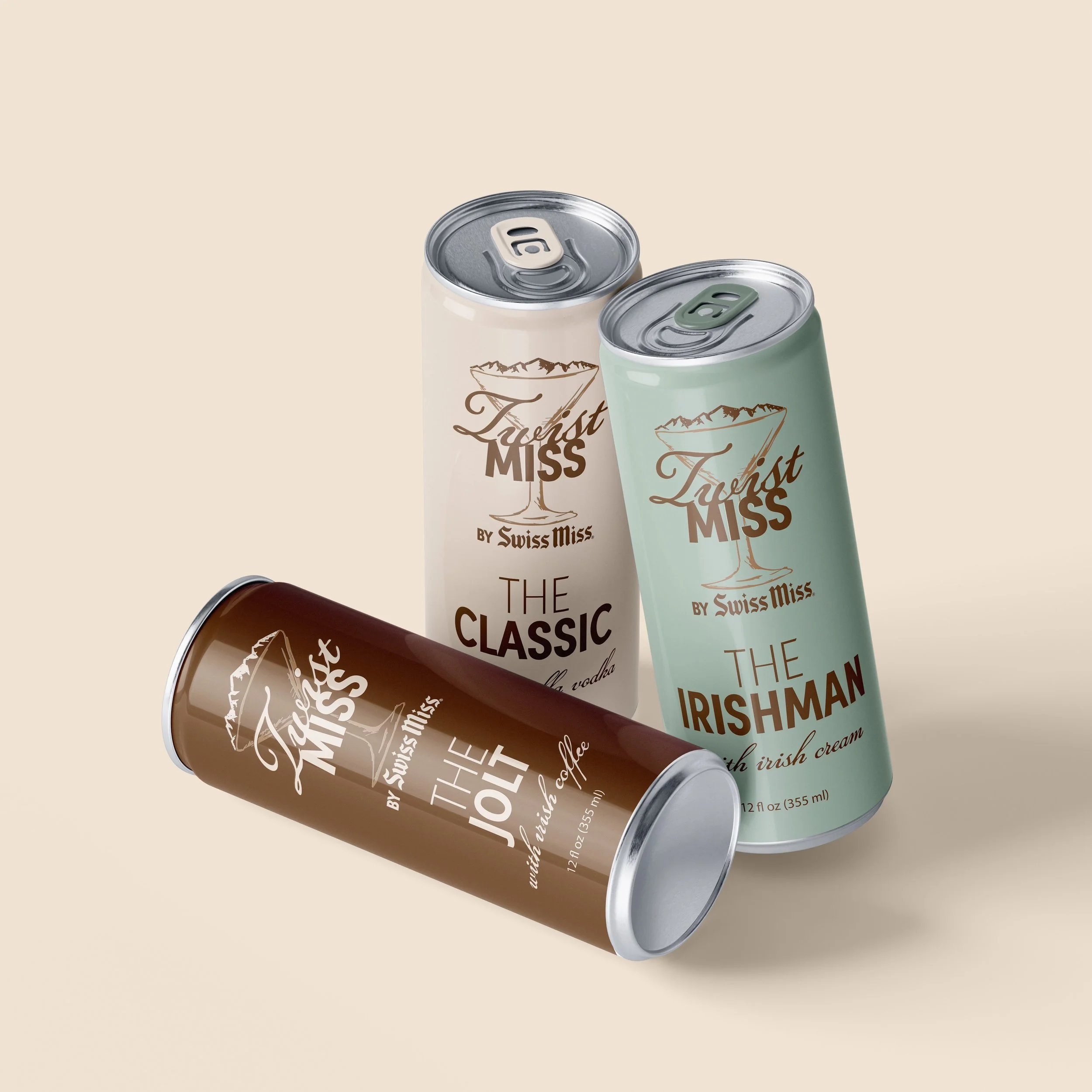 Adding elements from the original Swiss Miss logo with mountains and cursive-like font to honor their original heritage, while bracing for a new era of Swiss Miss. It was important to us to incorporate other odes to their original product, such as chocolate browns and blue hues.